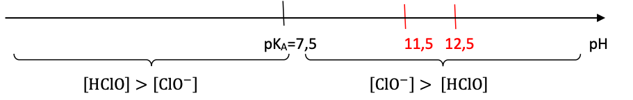 - La valeur du p𝐾𝐴 du couple acide-base HClO/ClO− est 7,5.