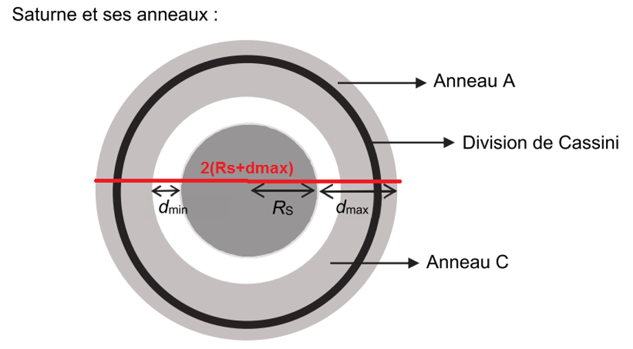 Considérons Saturne et l’extrémité la plus éloignée de l’anneau A (anneau le plus éloigné considéré visible), ils sont séparés de $d_{max}$.