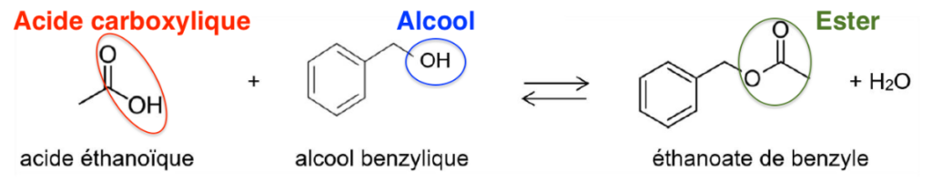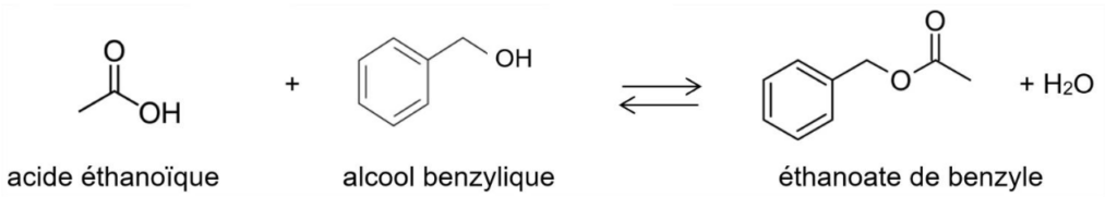 L’équation de la réaction modélisant la synthèse de l’éthanoate de benzyle est la suivante :