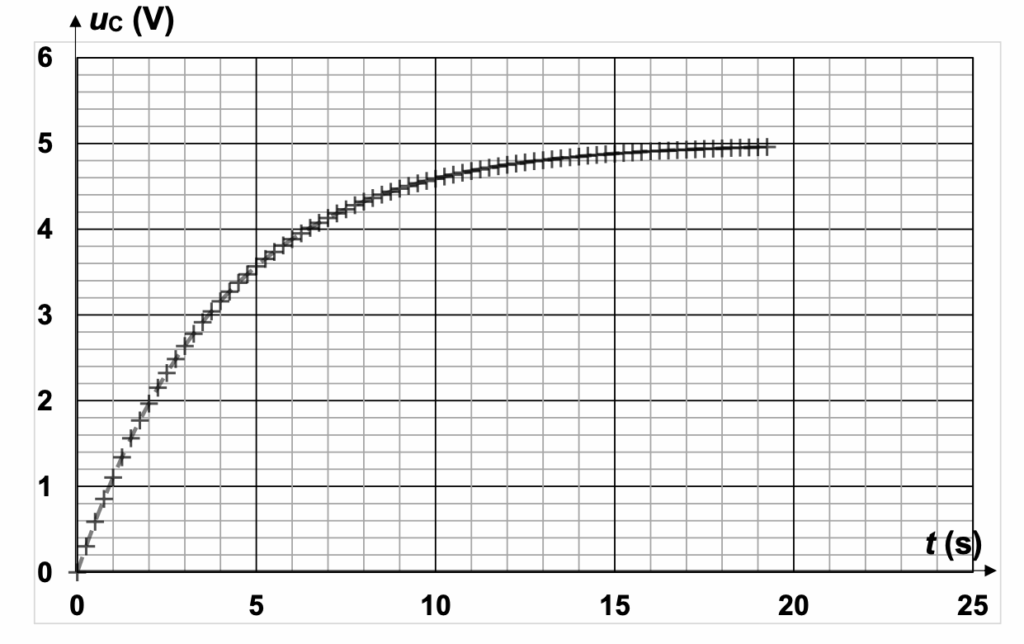 Exercice 3 – Évolution de la tension uC aux bornes du condensateur en fonction du temps – Courbe expérimentale obtenue au laboratoire