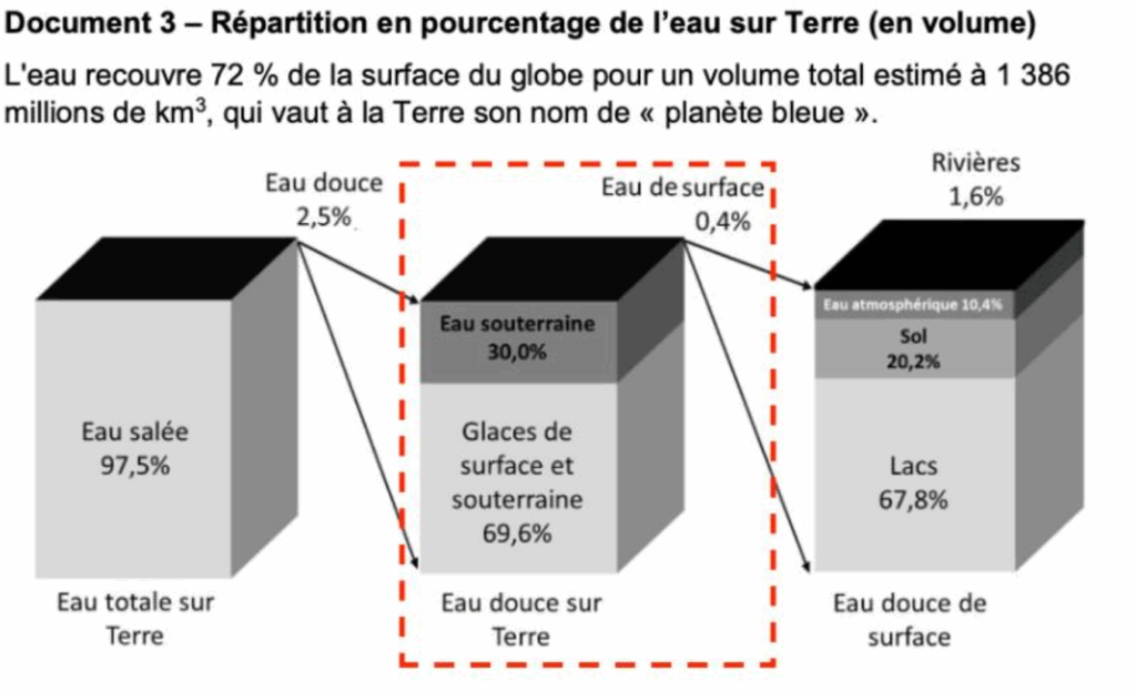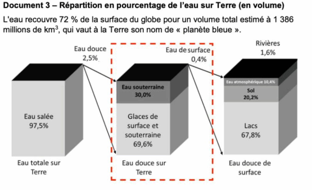 Document 3 – Répartition en pourcentage de l’eau sur Terre (en volume)
