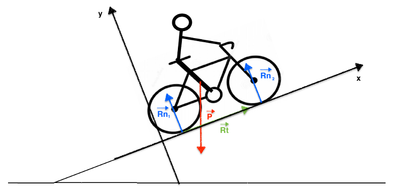1. Étude mécanique du système S : {Vélo + cycliste}