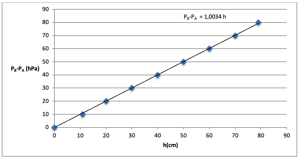 Nous avons une droite qui passe par l’origine, $P_B-P_A$ est proportionnel à $h$.