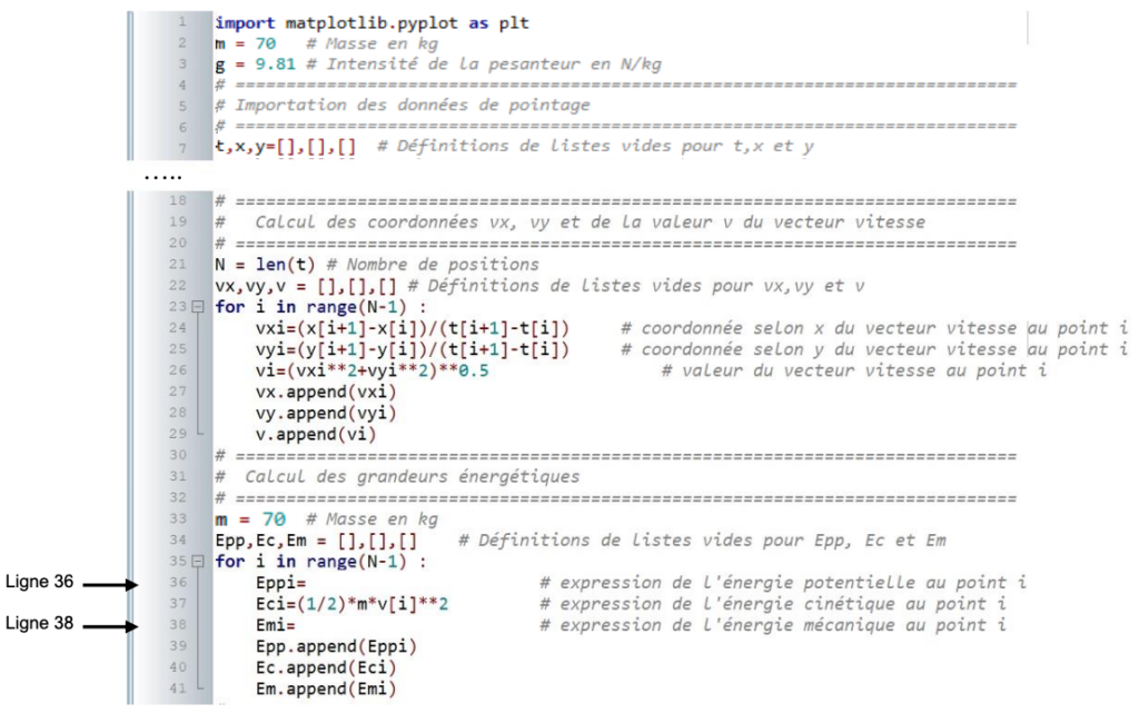 Pour effectuer l’étude énergétique, on utilise un programme Python dont un extrait est reproduit figure 2 ci-dessous.