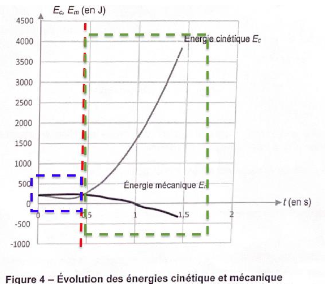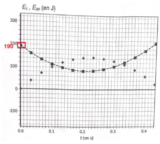 2. Justifier que la courbe en pointillés sur la figure 3 ci-dessus est celle de l’évolution de l’énergie cinétique au cours du temps.