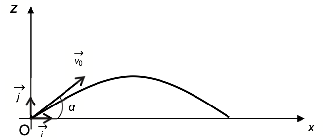 $\overrightarrow{v_0}$, a une direction faisant un angle αavec l’axe horizontal (Ox). On note v0 la norme de $\overrightarrow{v_0}$.
