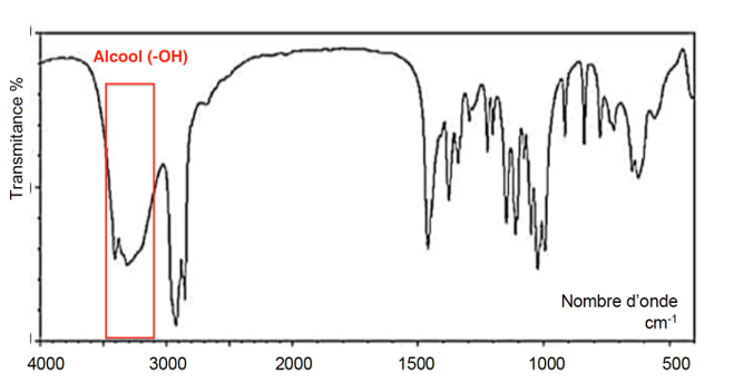 chaîne cyclique![]() | Alcool (-OH) | 3200 – 3450 ou 3600 – 3700 |