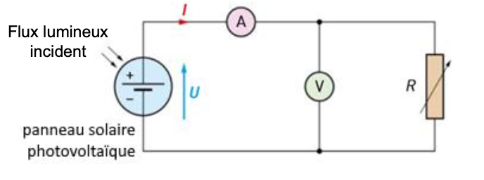 Afin de vérifier le rendement du panneau, on réalise le montage électrique suivant :