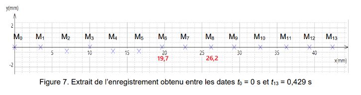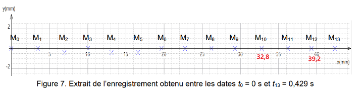 D’après le sujet : t0 = 0 s et t13 = 0,429 s