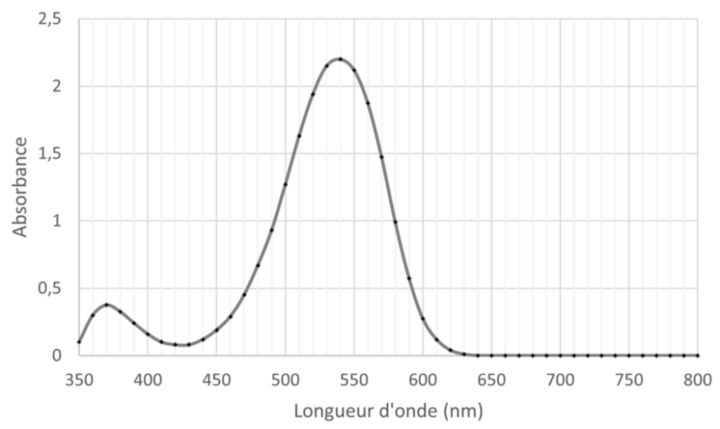 La longueur d’onde à laquelle il faut régler le spectrophotomètre pour réaliser les mesures d’absorbance est λmax=540 nm.