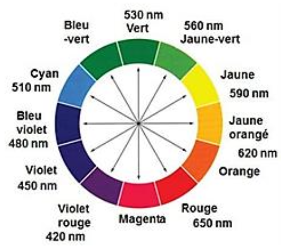 La couleur absorbée correspond à λmax=540 nm : couleur vert.