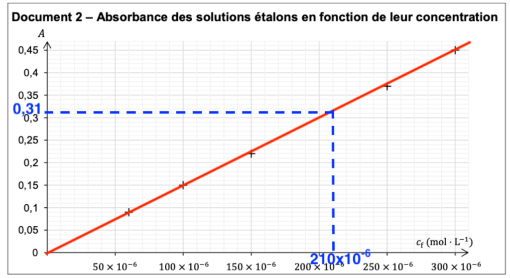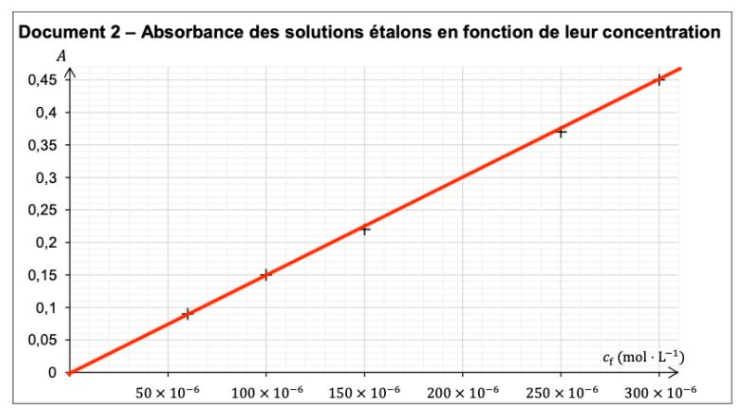 Document 2 – Absorbance des solutions étalons en fonction de leur concentration