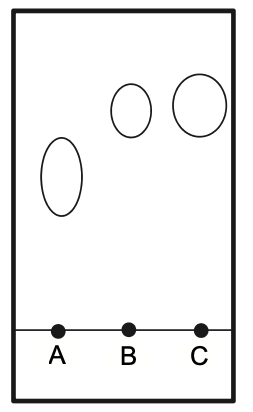 Pour vérifier la composition de la phase organique, on l’analyse à l’aide d’une chromatographie sur couche mince. Après révélation à l’aide d’une solution de permanganate de potassium, on obtient le chromatogramme reproduit sur la figure 2.
