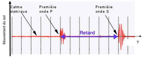 5. Représenter sur le document donné en annexe 1 à rendre avec la copie, le retard de l’onde S par rapport à l’onde P.