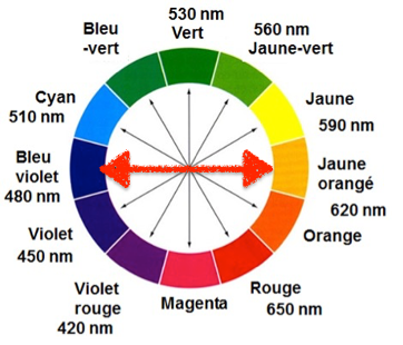 La couleur complémentaire est la couleur diamétralement opposée sur le cercle chromatique.