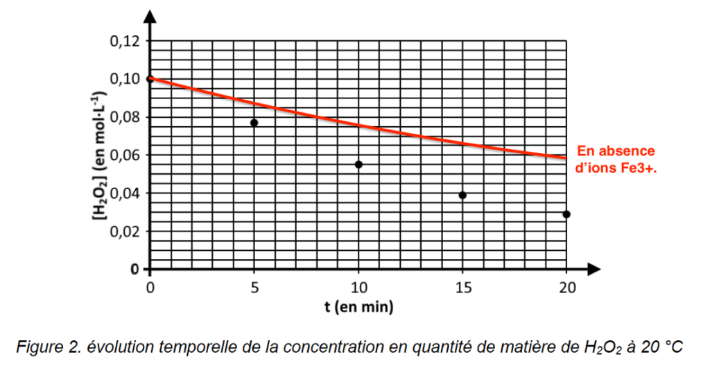 Q.6. Indiquer le rôle des ions Fe3+ dans la décomposition du peroxyde d’hydrogène.