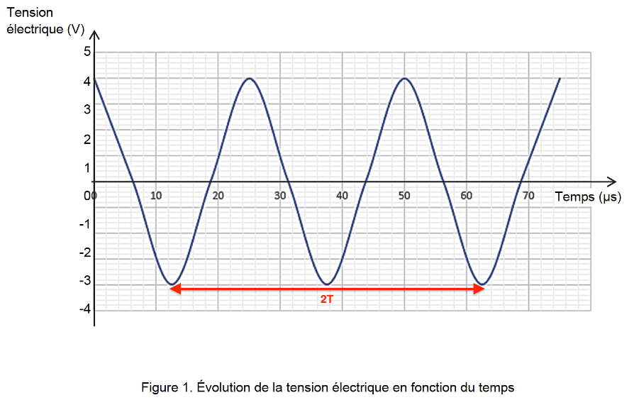 La synthèse de l’acide caprylique peut être réalisée par sonochimie à partir d’octan-1-ol et d’acide nitrique. Un capteur permet de visualiser le signal à la sortie de l’émetteur d’ultrasons en fonction du temps (figure 1).