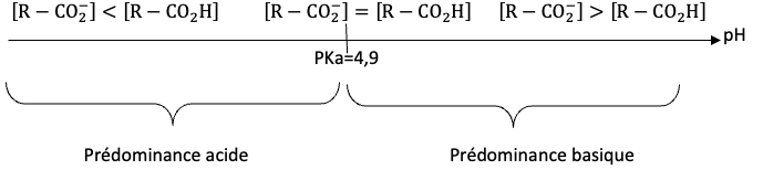 Dans la solution préparée, pH=3,6 : la forme prépondérante est l’acide caprylique 𝐑−𝐂𝐎𝟐𝐇.