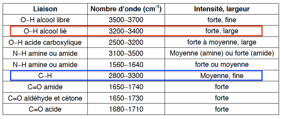 O-H acide carboxylique2500-3200forte à moyenne, large