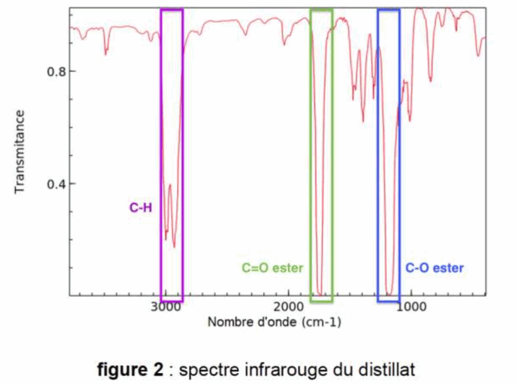11. L’enregistrement du spectre infrarouge du distillat obtenu lors de la mise en œuvre du protocole 2 est représenté figure 2. Discuter la compatibilité de ce spectre avec l’espèce chimique attendue dans le distillat.