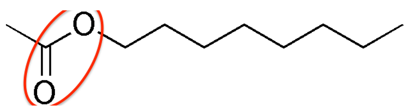 3. Recopier et nommer les groupes fonctionnels présents dans les molécules d’acide éthanoïque et d’éthanoate d’octyle.