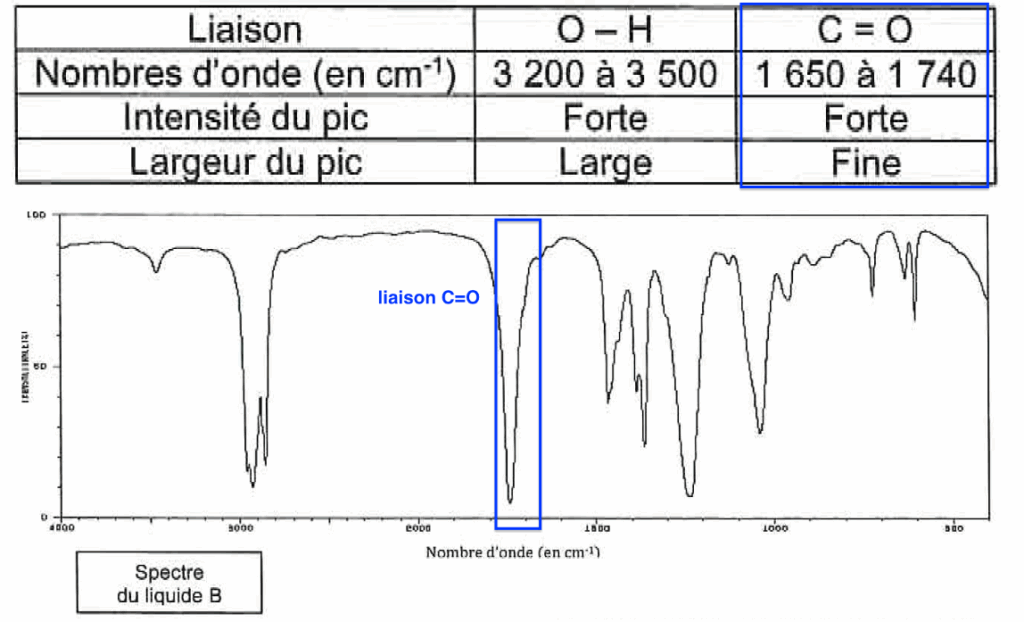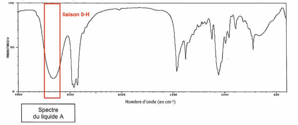 4. À l’aide des deux spectres, montrer que le liquide A correspond à l’alcool et le liquide B à l’ester.