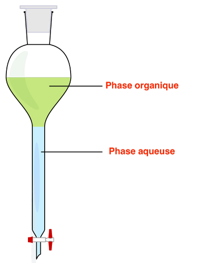 La densité de l’eau est supérieure à celle de l’éther diéthylique : la phase aqueuse est en bas et la phase organique en haut.