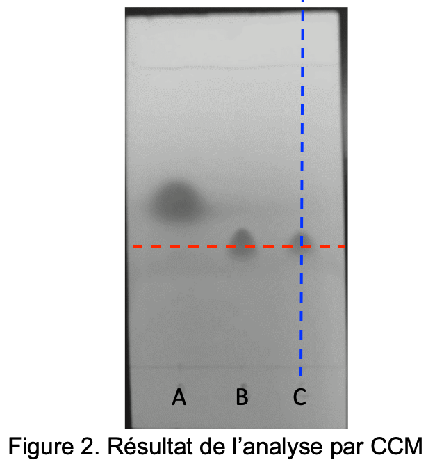 On donne sur la figure 2 le résultat de la chromatographie sur couche mince (CCM) obtenue.