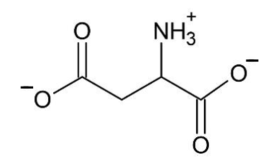 - L’acide aspartique existe en solution aqueuse sous quatre formes que l’on note : H3Asp+, H2Asp, HAsp− et Asp2–.