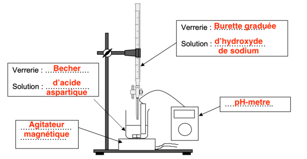 9. Calculer la valeur de la masse d’acide aspartique contenue dans l’échantillon.