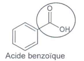 1.1. Nommer le groupe caractéristique entouré sur la molécule d’acide benzoïque.