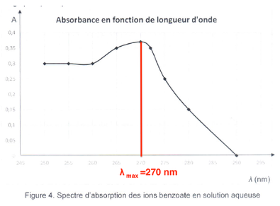 5. Vérification de la quantité de matière en ions benzoate restante à l’aide d’un dosage spectrophotométrique.