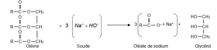 Équation de la réaction modélisant la synthèse de l’oléate de sodium