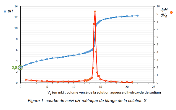 Figure 1. courbe de suivi pH-métrique du titrage de la solution S