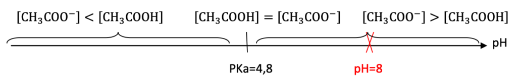 • couple acide éthanoïque / ion éthanoate : pKA (CH3COOH(aq)/ CH3COO(aq)) = 4,8 ;