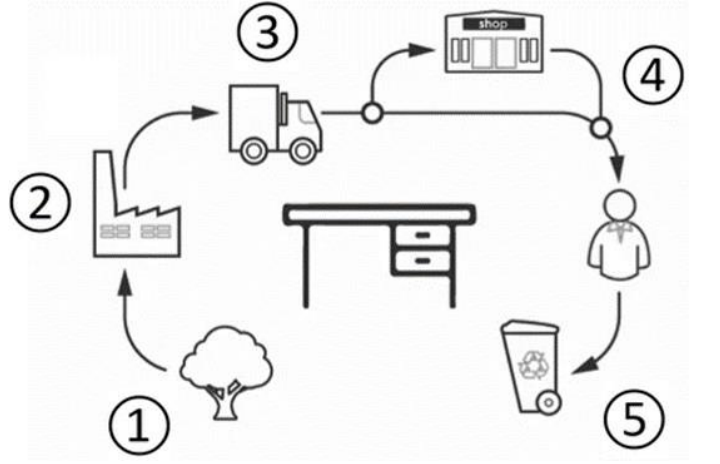 Dans un premier temps, l’ingénieure a identifié les différents moments du cycle de vie (document 1) d’un bureau composé de bois (chêne) et de métal (aluminium) et utilisé un graphique indiquant l’impact de chacune des étapes de ce cycle de vie sur l’environnement (document 2).