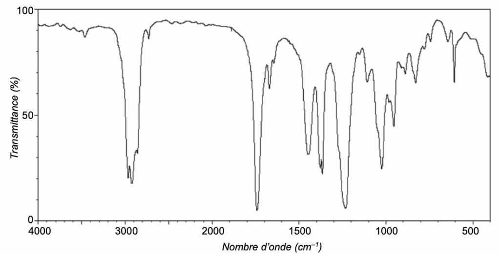 - Une bande correspondant à une liaison C = O (nombre d’onde compris entre 1 700 – 1 800 cm-1)