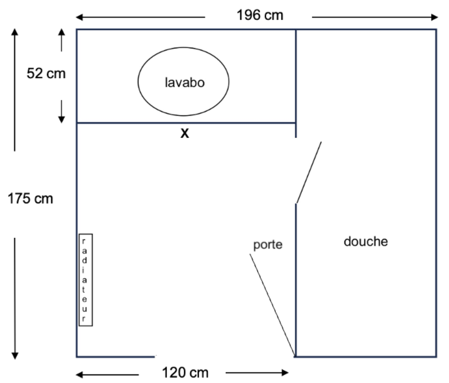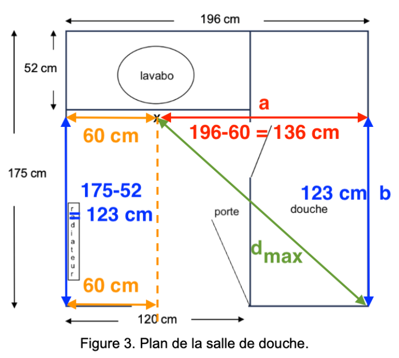 En s’aidant de la vue en plan de la salle de douche fournie dans les données, préciser si une personne peut être présente dans la salle de douche sans être incommodée.