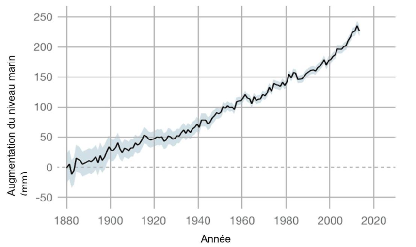 Document 3 – Augmentation du niveau de la mer entre 1880 et 2016