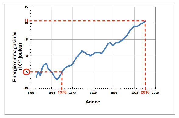 En 2010 l’énergie accumulée est 11×1022 J