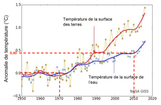 Document 2 – Évolution de la température moyenne de la surface des terres et des océans