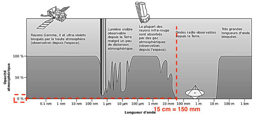 Une opacité atmosphérique égale à 0 % signifie que les radiations électromagnétiques ne sont pas absorbées par l’atmosphère.
