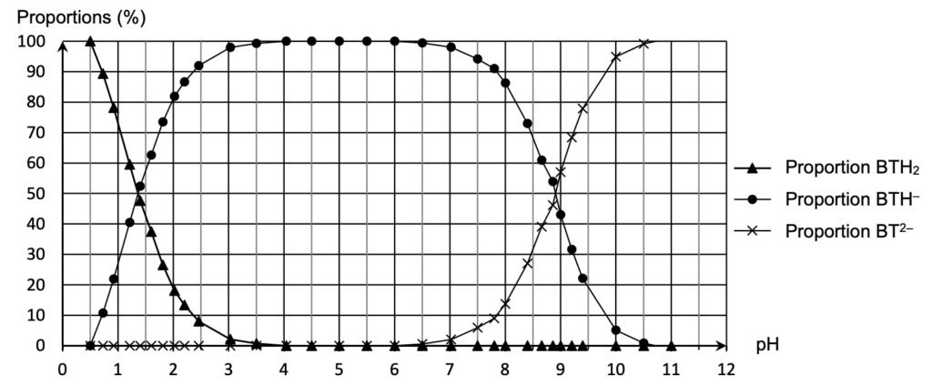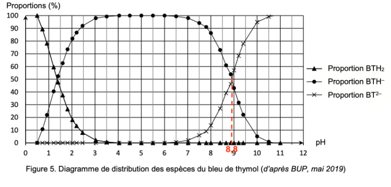 Figure 5. Diagramme de distribution des espèces du bleu de thymol (d’après BUP, mai 2019)
