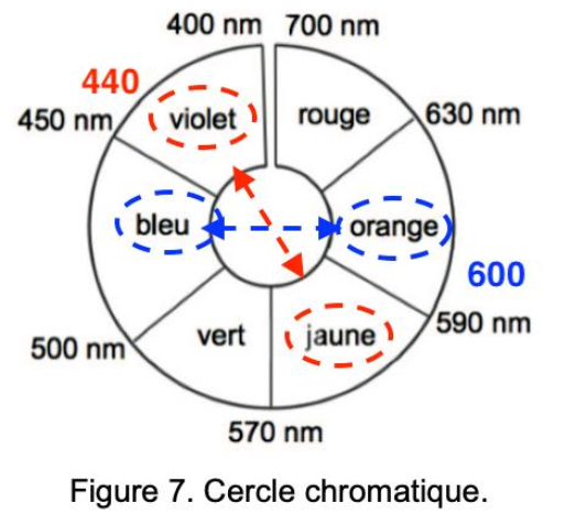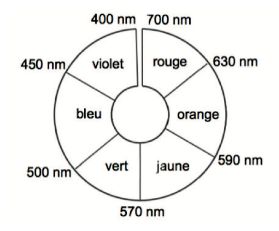 La couleur de la solution est la couleur complémentaire (diamétralement opposée sur le cercle chromatique) à celle absorbée.