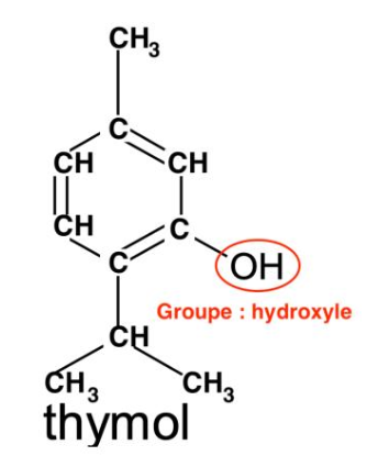 Q1. Écrire la formule semi-développée du thymol puis entourer et nommer son groupe caractéristique.
