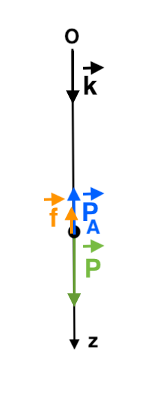 $\overrightarrow{P_A}$ et $\overrightarrow{F}$ sont orienté vers le haut, dans le sens opposé à l’axe z.